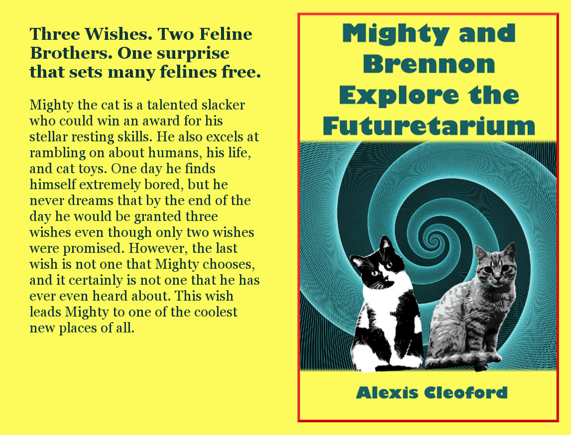 Mighty is fascinated by all the all the lights and paraphernalia at this new place. He takes a special interest in the one section with the big screen that makes him feel like he’s in another time period and in a distant land. As Mighty feels the fluid future with his paw, he ponders what materials he should use to build his bright future. He also uses his wild imagination to predict what his life would be like if he lived in ancient Egypt with the Great Cat. Mighty dreams of a world without cat haters, and tells all about how cat haters are created. Apparently, hate has a lot do with poop and misunderstanding. Mighty finds out how to feel timeless and reveals whether he should try to outrun time. One of the biggest things Mighty realized while being lost in his mind is that he’s faster than a spinning monkey. When Mighty leaves the awesome new place with his brother, Brennon, he has one surprise for his feline cousins; this surprise sets the felines free.